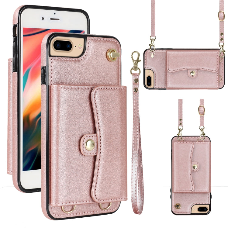 Estuche para Teléfono iPhone 8 Plus 7 Plus con Ranura para Tarjeta RFID y Cordón Largo (Oro Rosa)