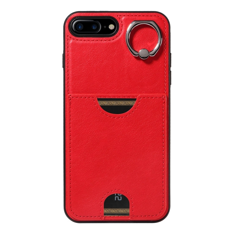 Funda para Teléfono iPhone 8 Plus 7 Plus con Soporte para Anillo y Ranura para Tarjeta (Rojo)
