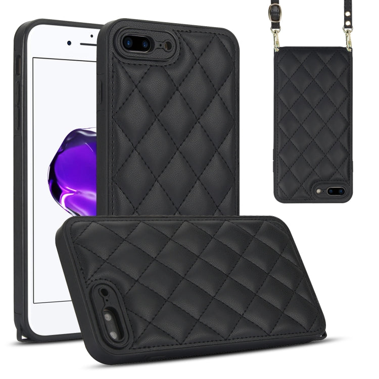 Funda para Teléfono iPhone 8 Plus/7 Plus Textura Rómbica con Cordón Doble (Negro)