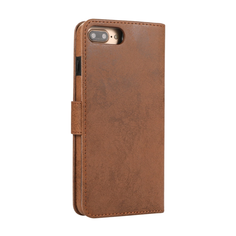 Estuche para iPhone 8 Plus 7 Plus Klt888-2 Cuero TPU PU Tapa Horizontal Magnética Soporte Ranuras Tarjetas Marco Fotos Billetera (Marrón)