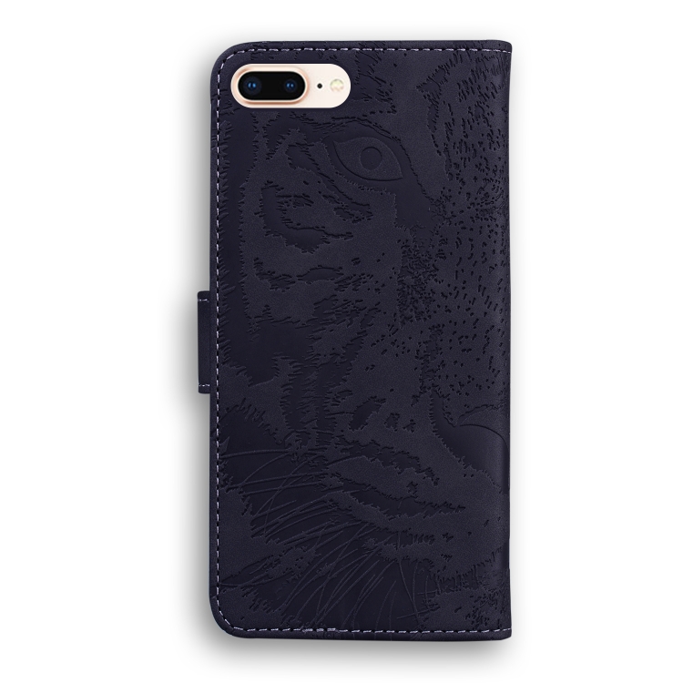 Funda de cuero iPhone 8 Plus 7 Plus Tiger Embossing con tapa horizontal soporte ranuras tarjetas billetera (Negro)