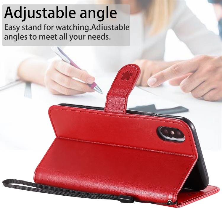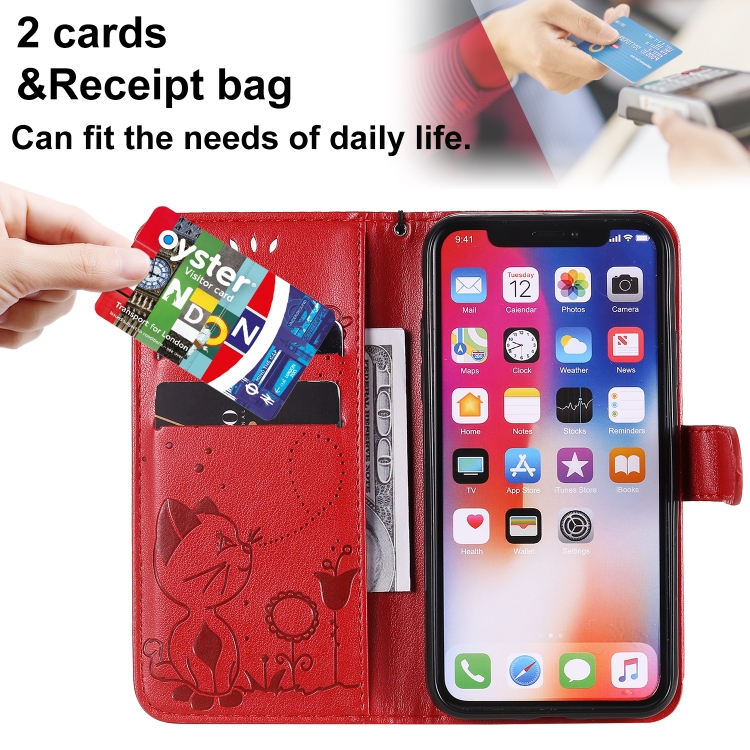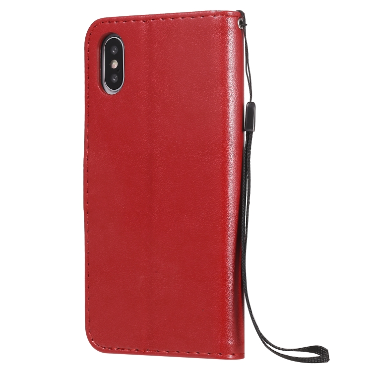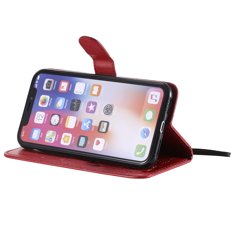 Funda de Cuero Cat Bee para iPhone X Xs con Tapa Horizontal, Soporte y Ranuras para Tarjetas (Rojo)