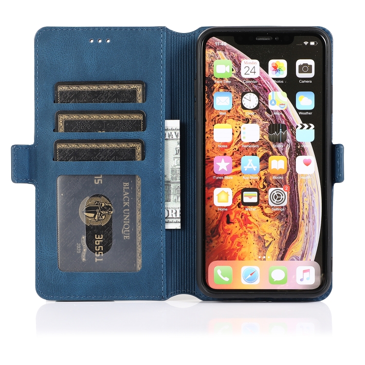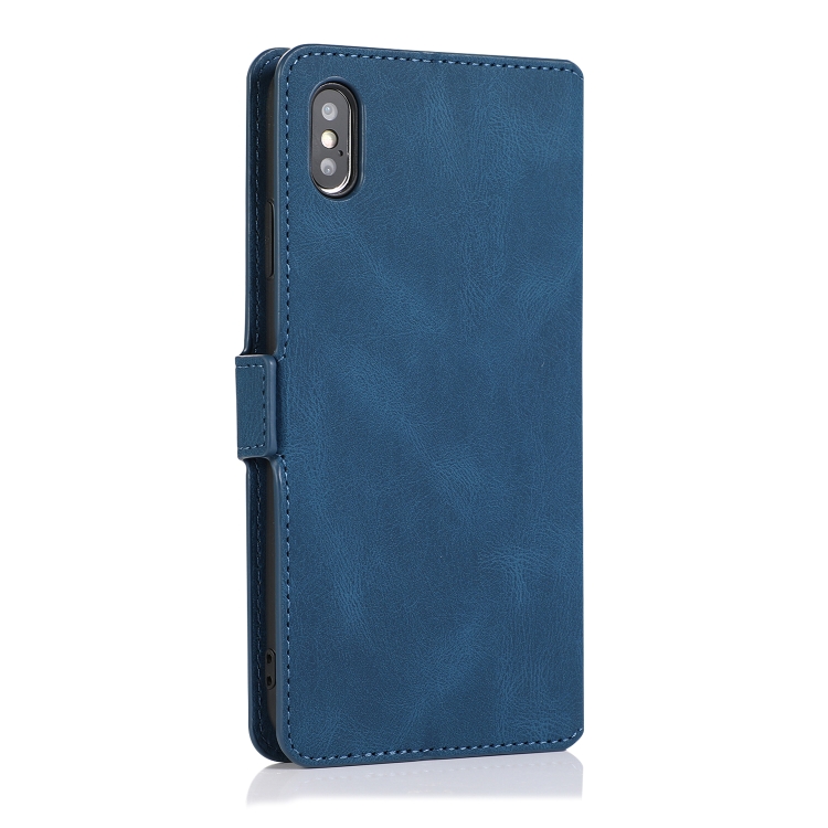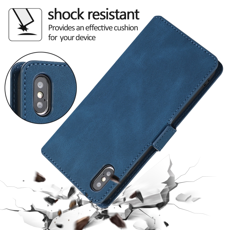 Funda para iPhone X / Xs Cierre Magnético Retro Cuero con Tapa Horizontal Soporte Ranuras Tarjetas Marco Fotos Billetera (Azul Marino)