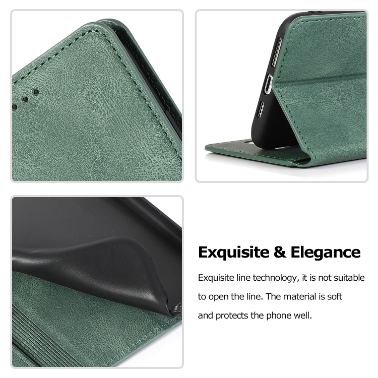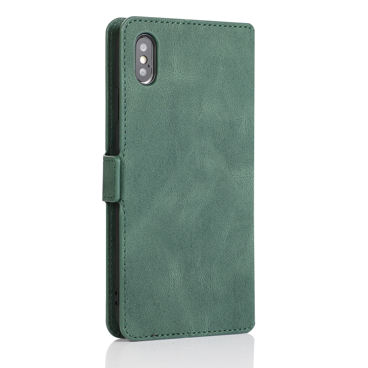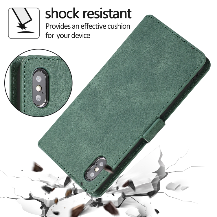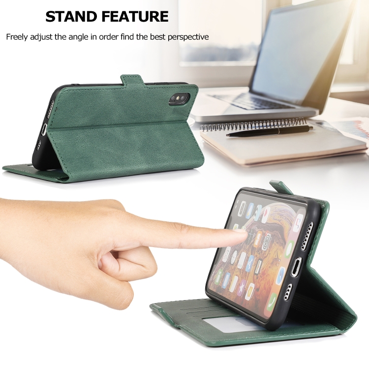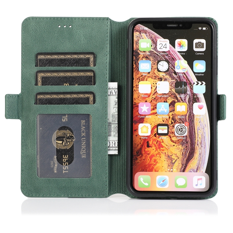 Estuche de Cuero para iPhone X / Xs Cierre Magnético Tapa Horizontal Soporte Ranuras Tarjetas Marco Fotos Billetera (Verde)