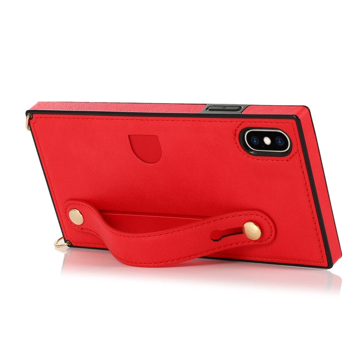 Correa para Muñeca Pu + TPU Estuche Protector para iPhone X Xs a Prueba de Golpes con Cordón Cruzado Soporte y Ranura para Tarjeta (Rojo)