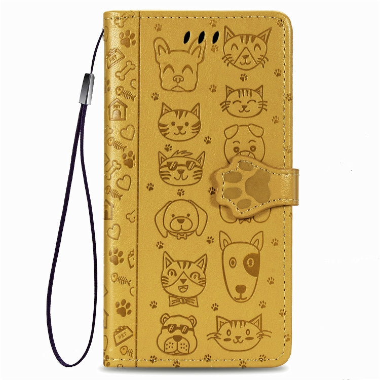 Funda para iPhone X Xs Cute Cat And Dog Cuero PU Tapa Horizontal Soporte Ranura Tarjeta Billetera Cordón (Amarillo)