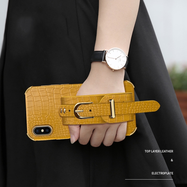 Estuche para iPhone X / Xs Cuero Patrón Cocodrilo TPU Galvanizado con Correa (Amarillo)