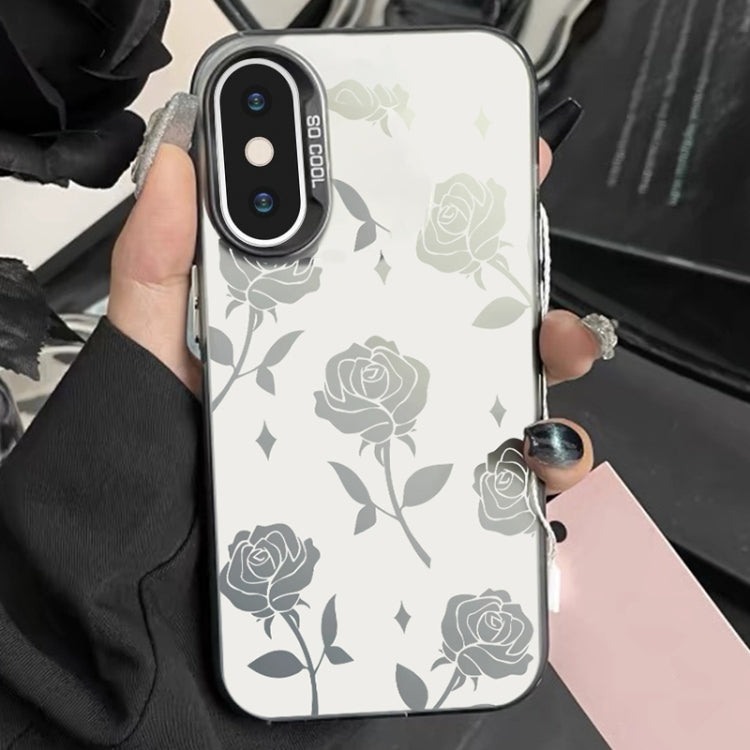Estuche híbrido para iPhone X Xs TPU pintura plateada PC (Negro Rosa Hueco)
