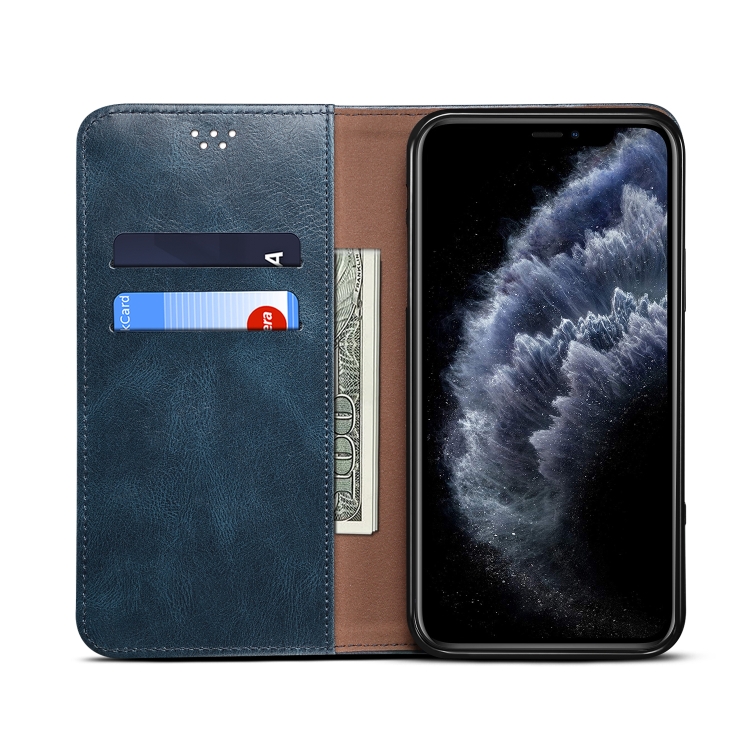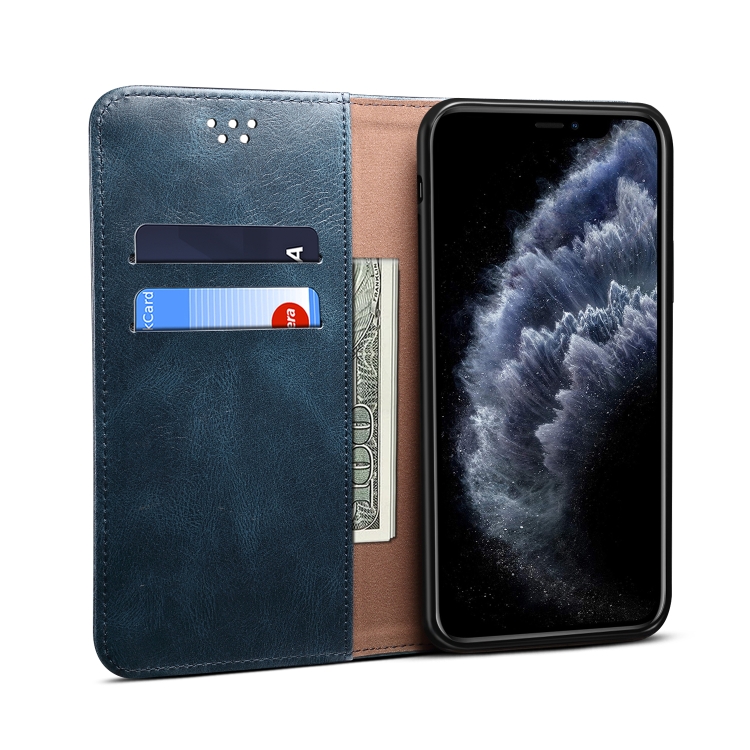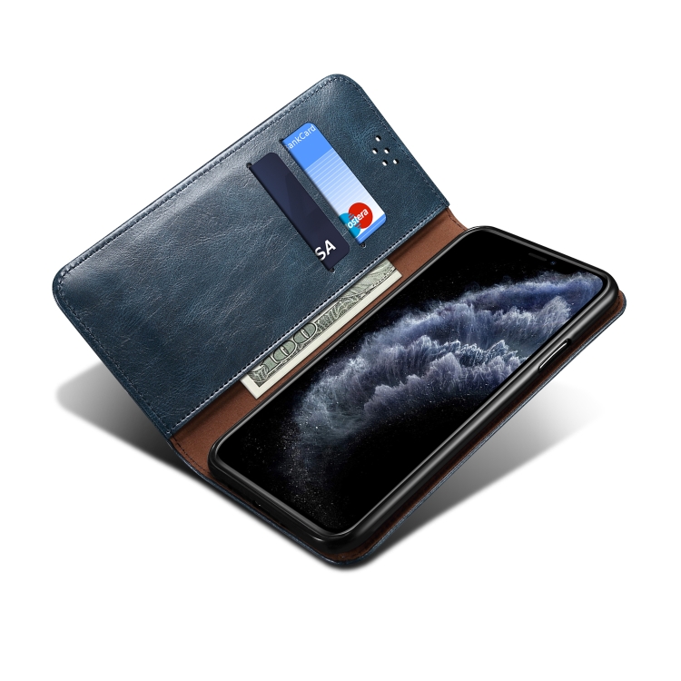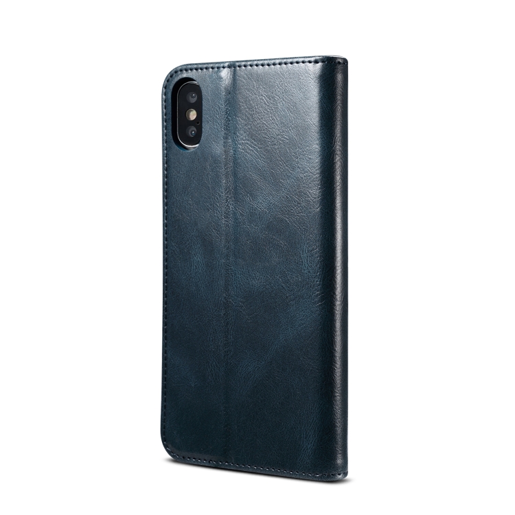 Funda para iPhone X Xs de Cuero con Tapa Horizontal Textura Caballo Loco Ranuras Tarjetas Billetera (Azul Marino)