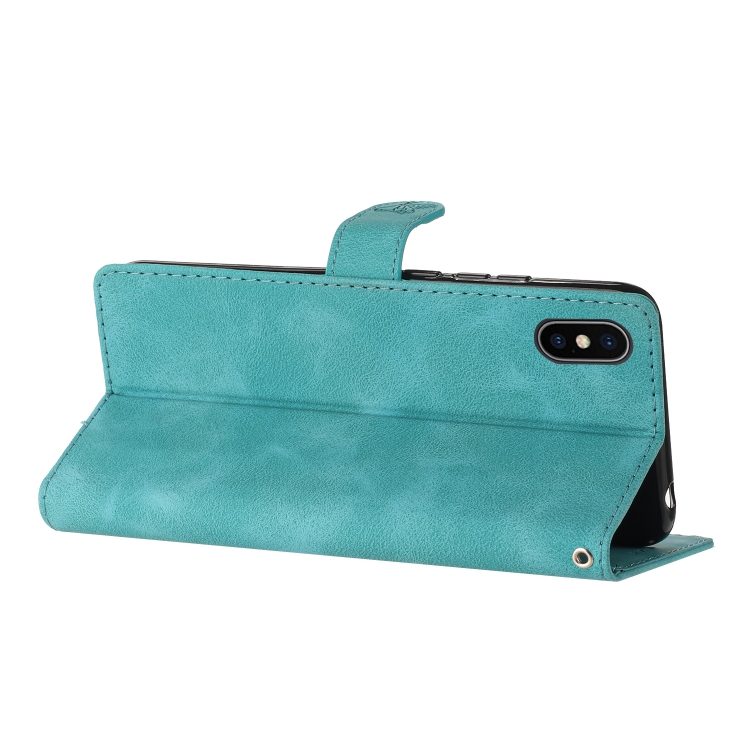 Funda de Teléfono iPhone X Xs Cuero Estampado Flores En Relieve (Azul Cielo)