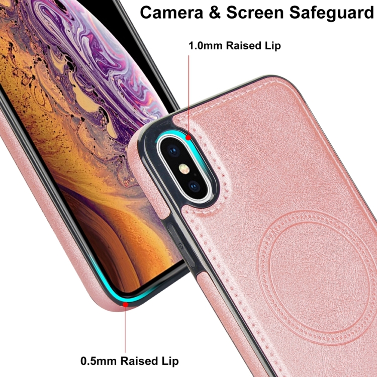 Funda de Teléfono Magsafe para iPhone X / Xs con Soporte Invisible de Cuero Retro (Oro Rosa)