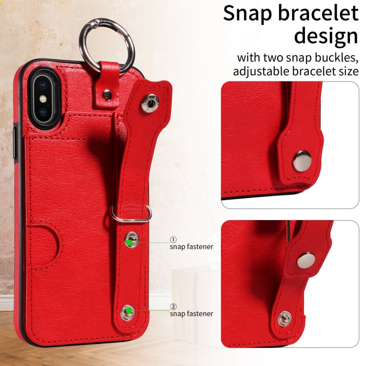 Funda para Teléfono iPhone X Xs con Anillo y Ranura para Tarjeta Textura de Pantorrilla (Rojo)