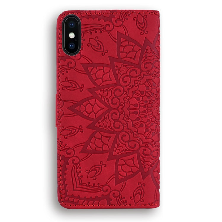 Estuche de Cuero para iPhone X Xs Patrón de Becerro Plegable Doble con Billetera y Soporte (Rojo)