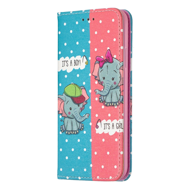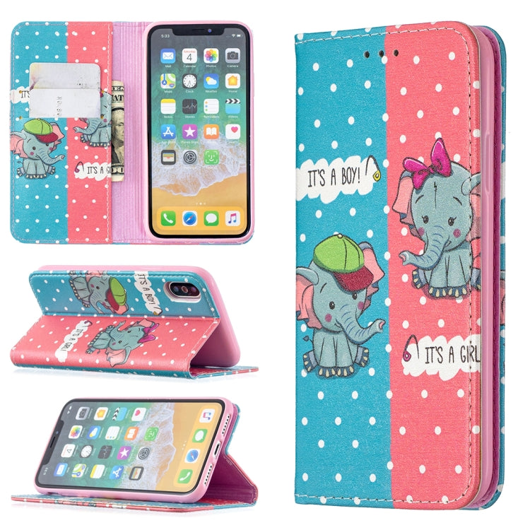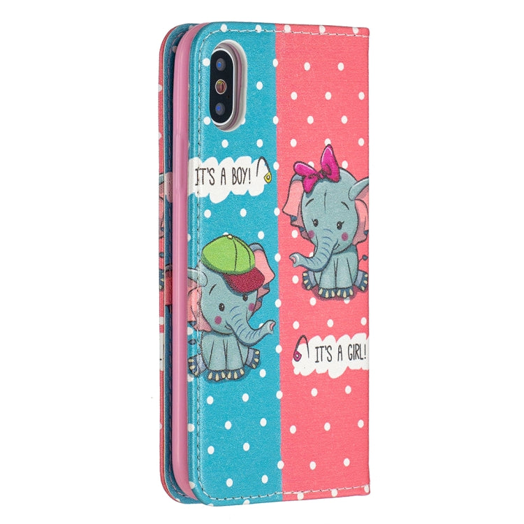 Estuche de Cuero de Pu para iPhone X Xs con Tapa Horizontal Magnética Soporte y Ranuras para Tarjetas Billetera (Elefante)