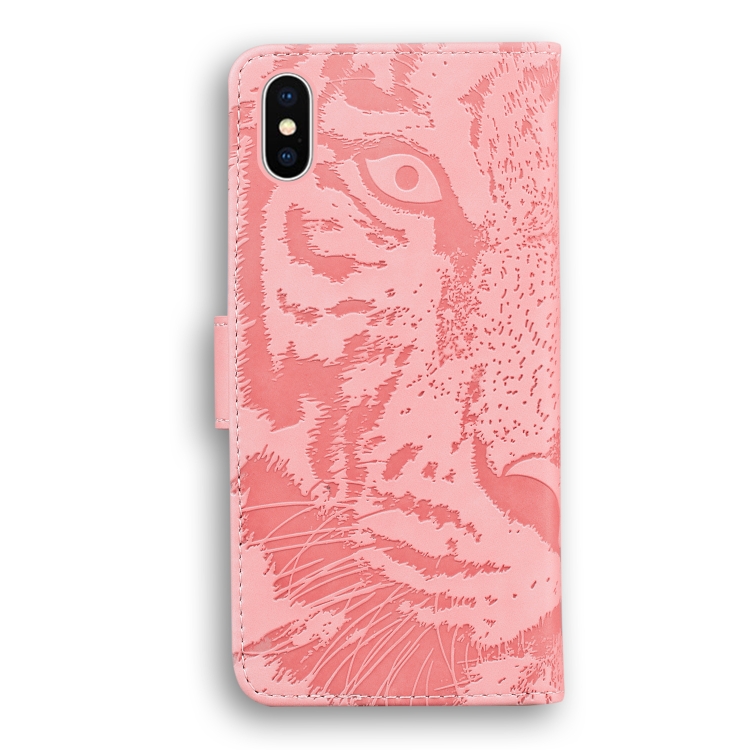Funda de Cuero para iPhone X / Xs Tiger Embossing con Tapa Horizontal Soporte Ranuras y Billetera (Rosa)