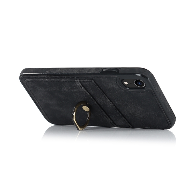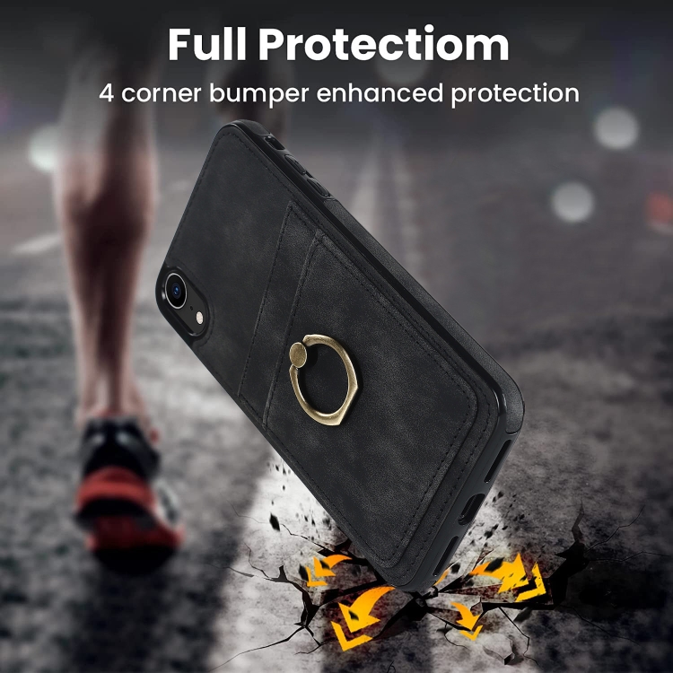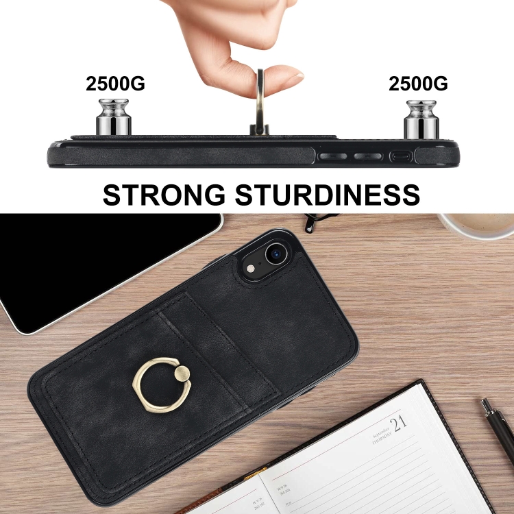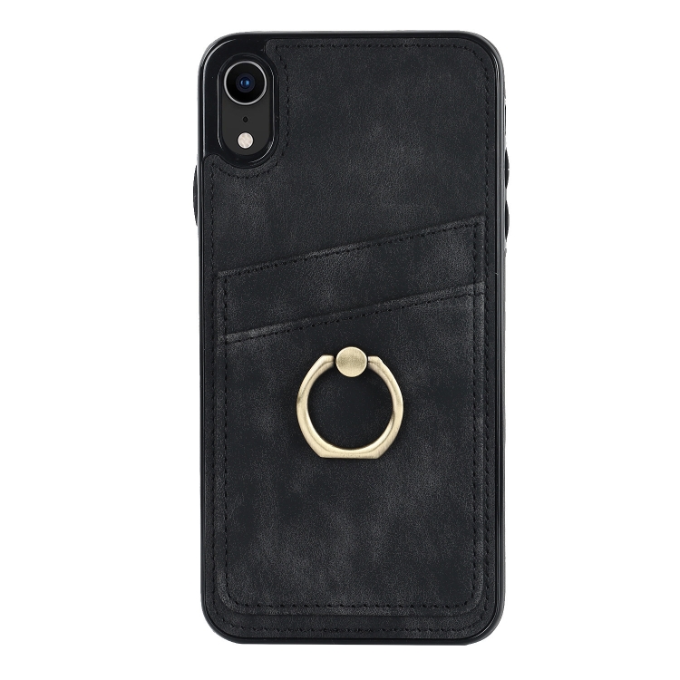 Estuche para Teléfono iPhone Xr Cuero Parche Vintage Soporte para Anillo (Negro)
