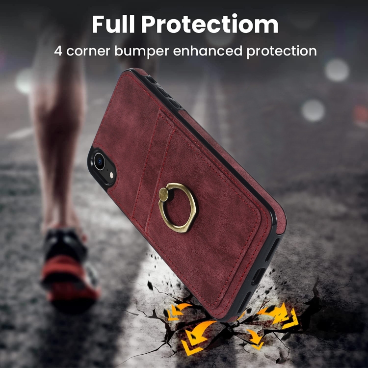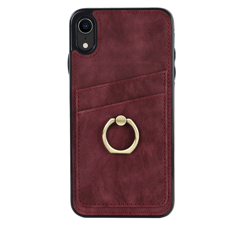 Estuche para Teléfono iPhone Xr Cuero Parche Vintage Soporte para Anillo (Rojo)