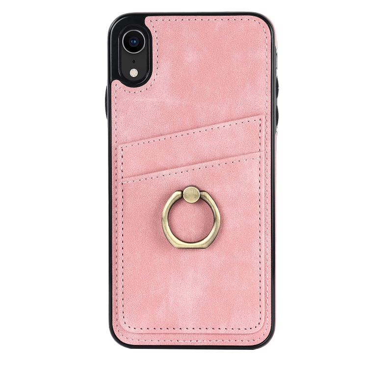 Estuche para Teléfono iPhone Xr Cuero Parche Vintage Soporte Anillo (Rosa)