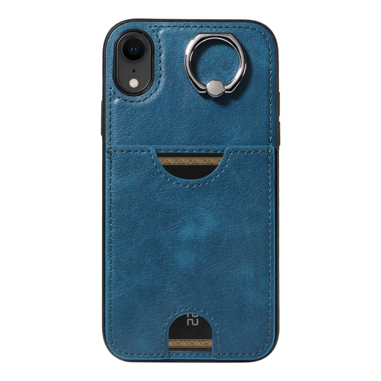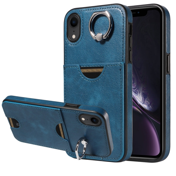 Funda para Teléfono iPhone Xr con Soporte para Anillo y Ranura para Tarjeta (Azul)