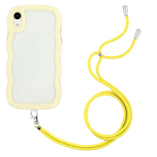 For iPhone XR Lanyard Candy Color Wave TPU Clear PC Phone Case(Yellow)