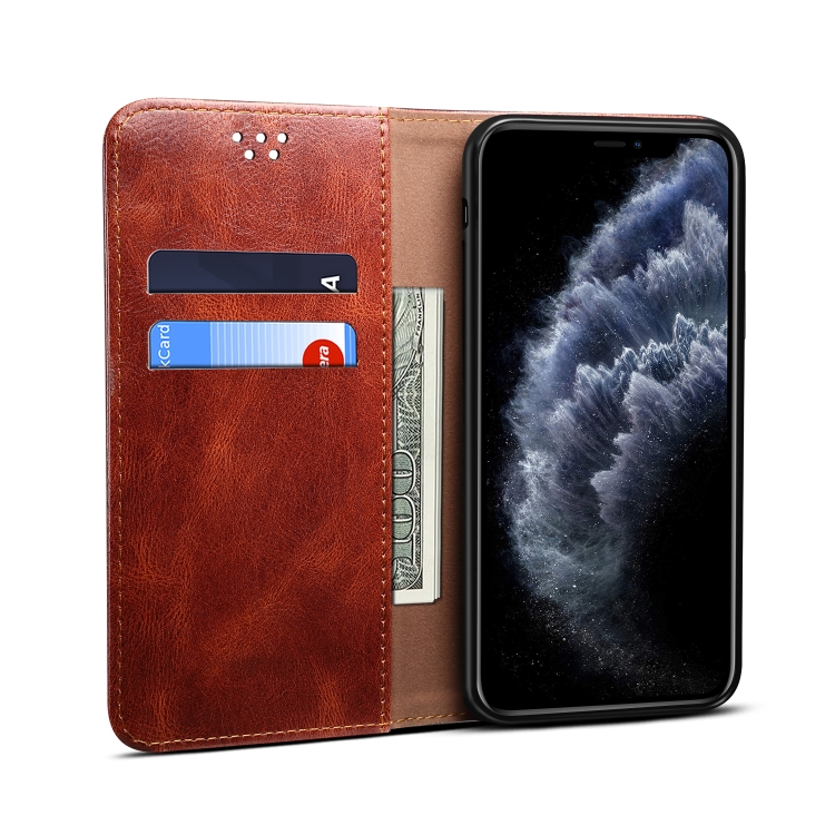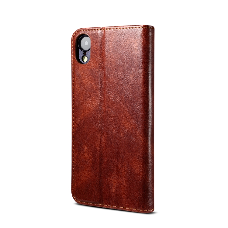 Funda de Cuero iPhone Xr Simple Wax Crazy Horse Textura Tapa Horizontal Ranuras Tarjetas Billetera (Marrón)