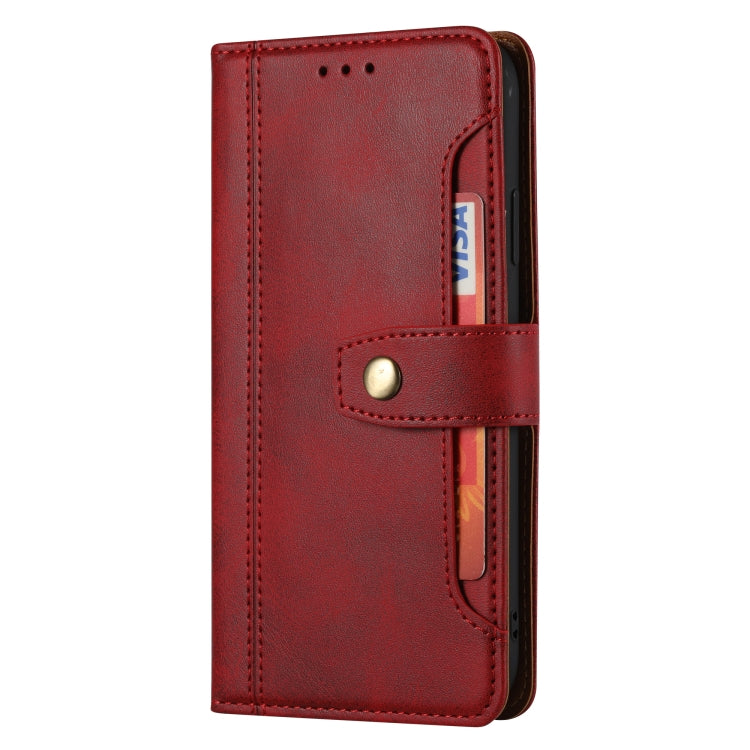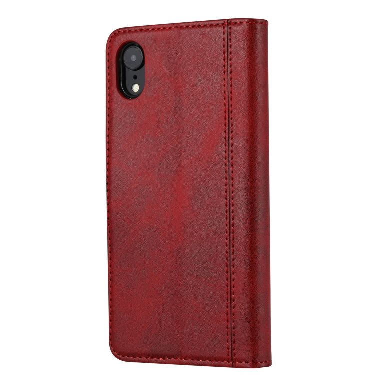 Funda de Cuero para iPhone Xr Textura de Pantorrilla Cierre de Doble Pliegue Tapa Horizontal con Marco de Fotos Soporte Ranuras para Tarjetas y Billetera (Rojo)
