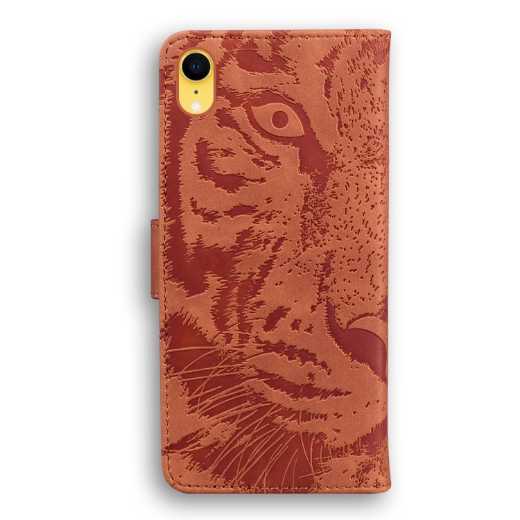 Funda de Cuero iPhone Xr Tiger Embossing con Tapa Horizontal Soporte Ranuras Tarjetas Billetera (Marrón)