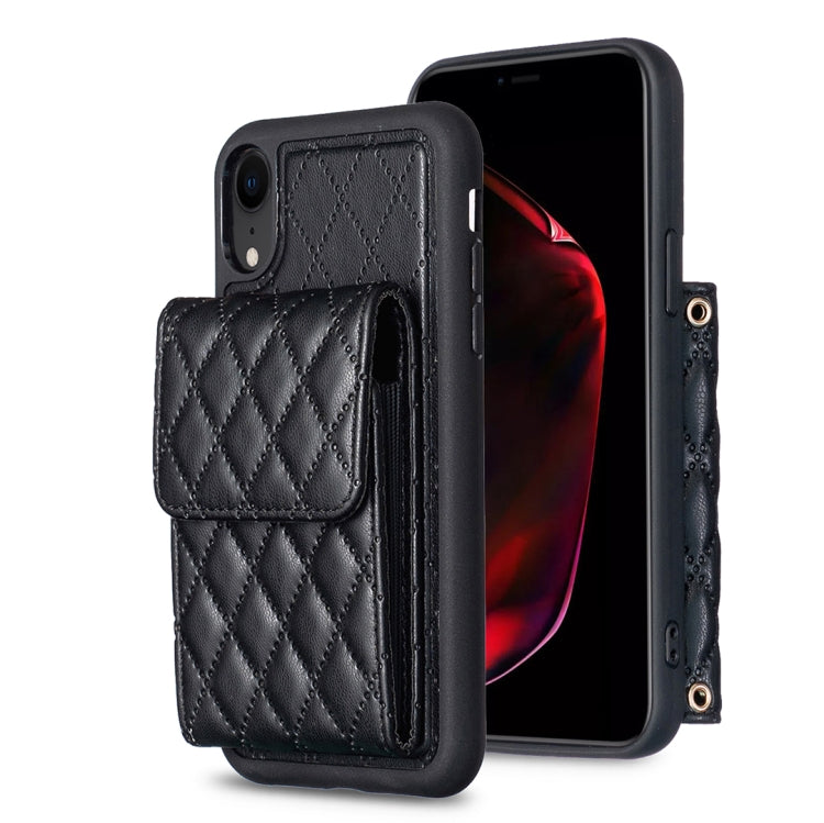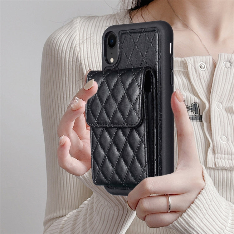 Funda para iPhone Xr Vertical Wallet Rhombic Leather Phone Case (Negro)