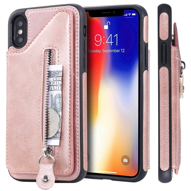 Funda Protectora para iPhone Xs Doble Hebilla Cremallera a Prueba de Golpes (Oro Rosa)