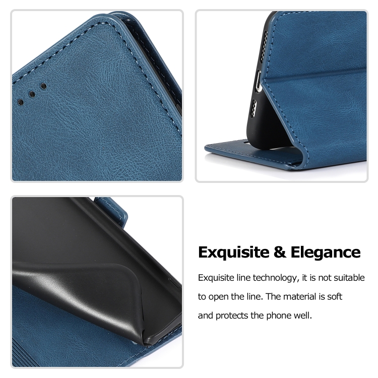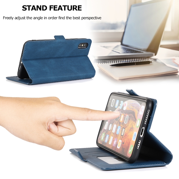 Estuche de Cuero para iPhone Xs Max Cierre Magnético Retro Tapa Horizontal Soporte Ranuras Tarjetas Marco Fotos Billetera (Azul Marino)