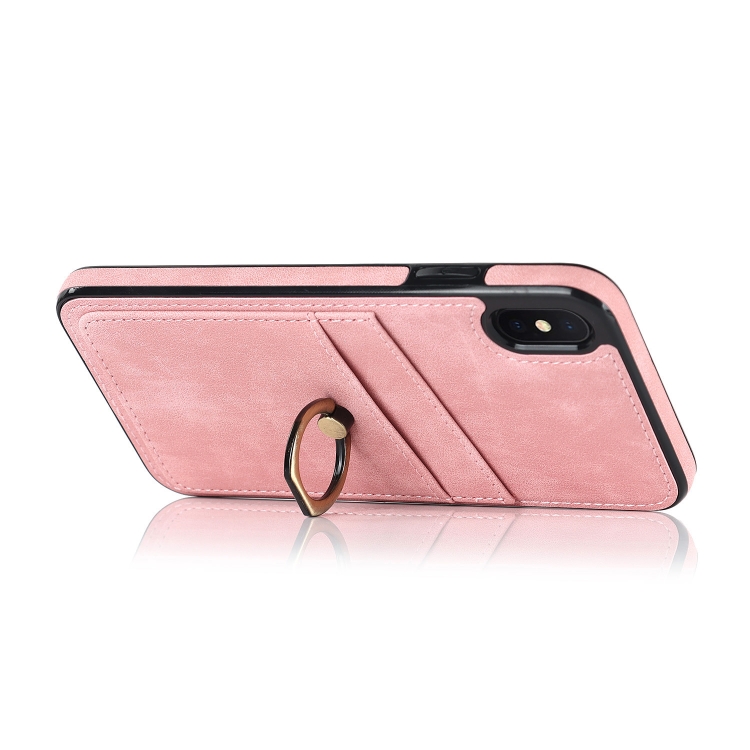 Estuche para Teléfono iPhone Xs Max Cuero Parche Vintage Soporte para Anillo (Rosa)
