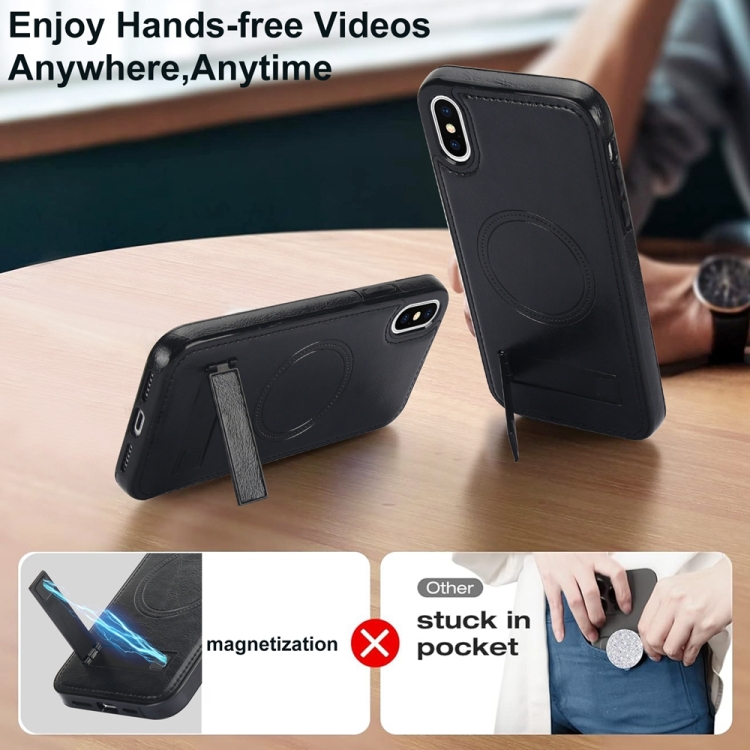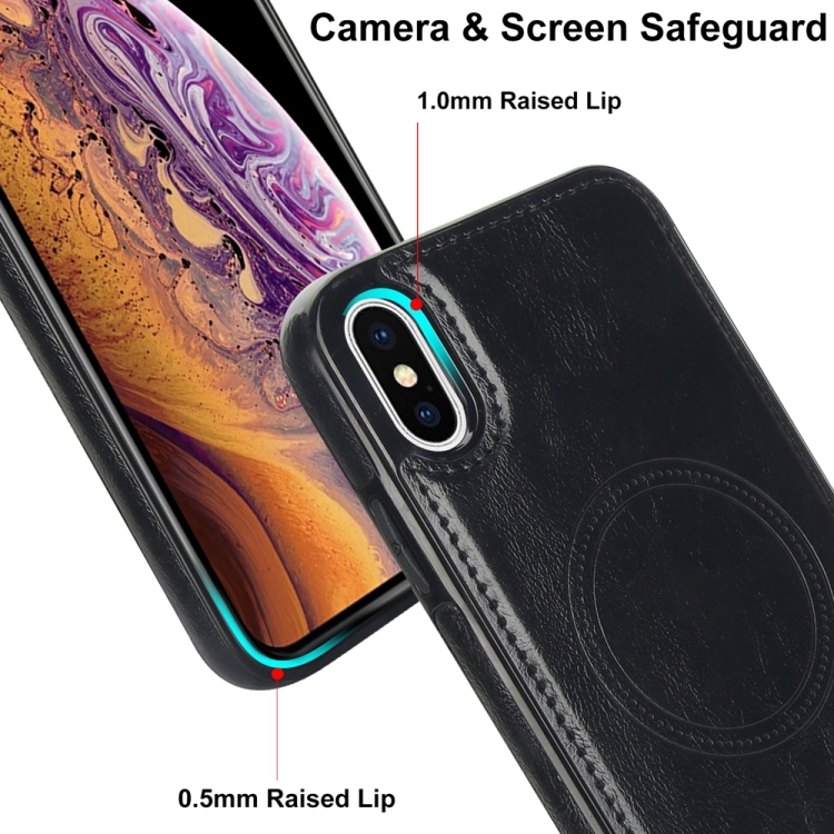 Funda para Teléfono iPhone Xs Max Magsafe Soporte Invisible Cuero Retro (Negro)