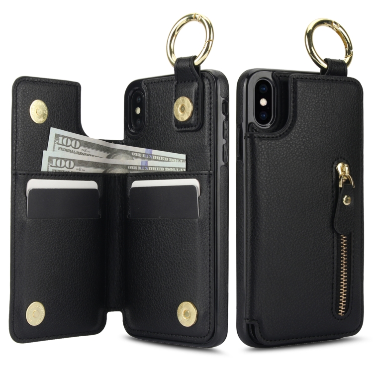 Funda para Teléfono iPhone Xs Max Litchi Texture Cremallera Doble Hebilla con Bolsa para Tarjetas (Negro)
