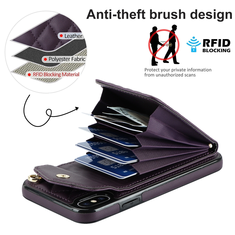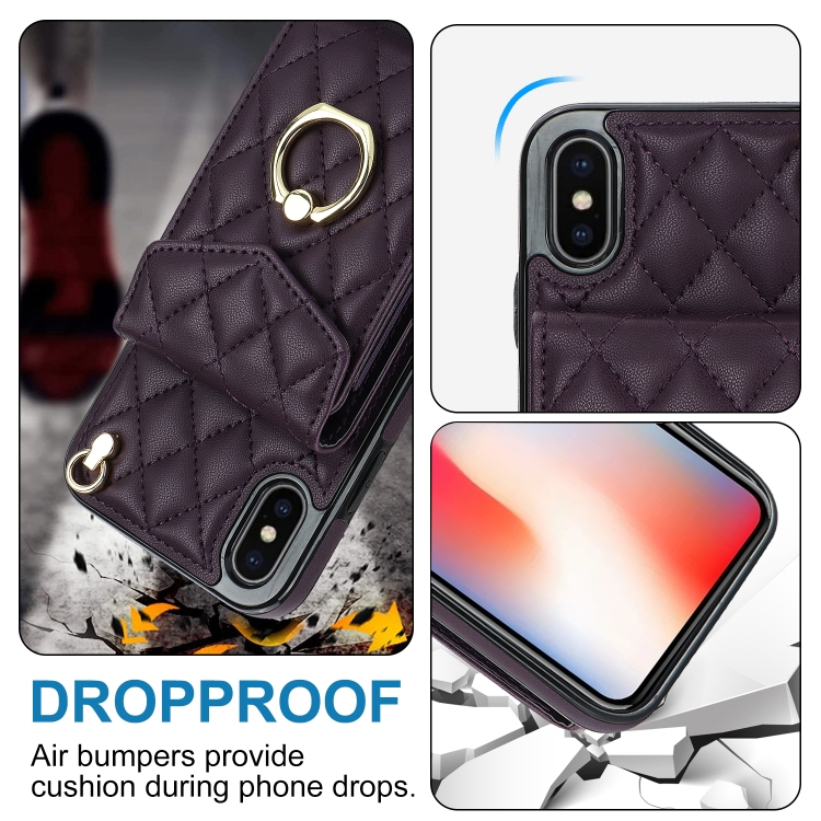 Funda para Teléfono iPhone Xs Max Rhombic Texture Card Bag con Cordón Largo (Morado Oscuro)