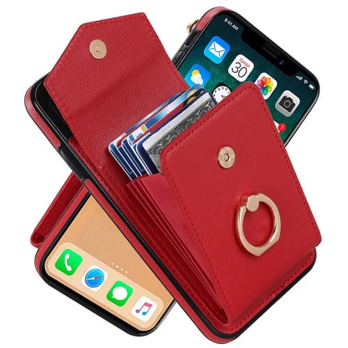 Funda para iPhone Xs Max Ring Holder con Ranura para Tarjeta RFID (Rojo)