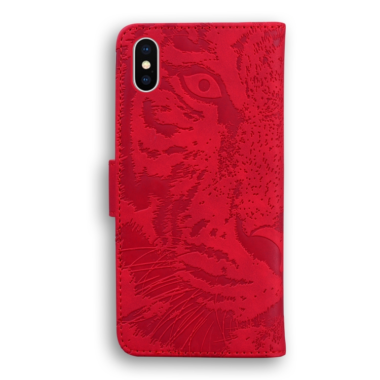 Estuche de Cuero iPhone Xs Max Tiger Embossing con Tapa Horizontal Soporte Ranuras y Billetera (Rojo)