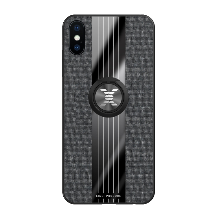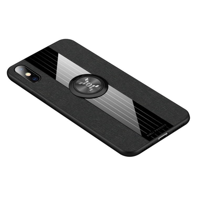 Estuche protector TPU Xinli para iPhone Xs Max a prueba de golpes con textura de tela y soporte para anillo (Negro)