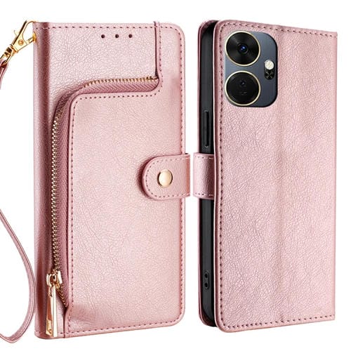 Funda de Cuero para Itel P55 + 4G con Bolsa y Cremallera (Oro Rosa)