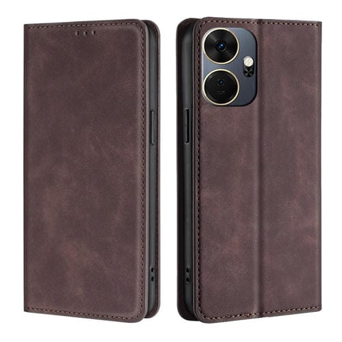 Funda de Cuero Magnética para Itel P55 + 4G (Marrón Oscuro) Skin Feel