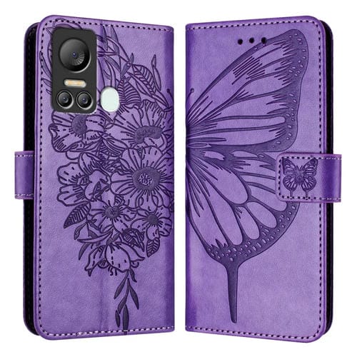 Funda para Itel S18 y Vision 5 de Cuero con Mariposa en Relieve (Púrpura Claro)