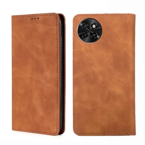 Funda de Cuero Magnética para Itel S23 4G Skin Feel para Teléfono (Marrón Claro)