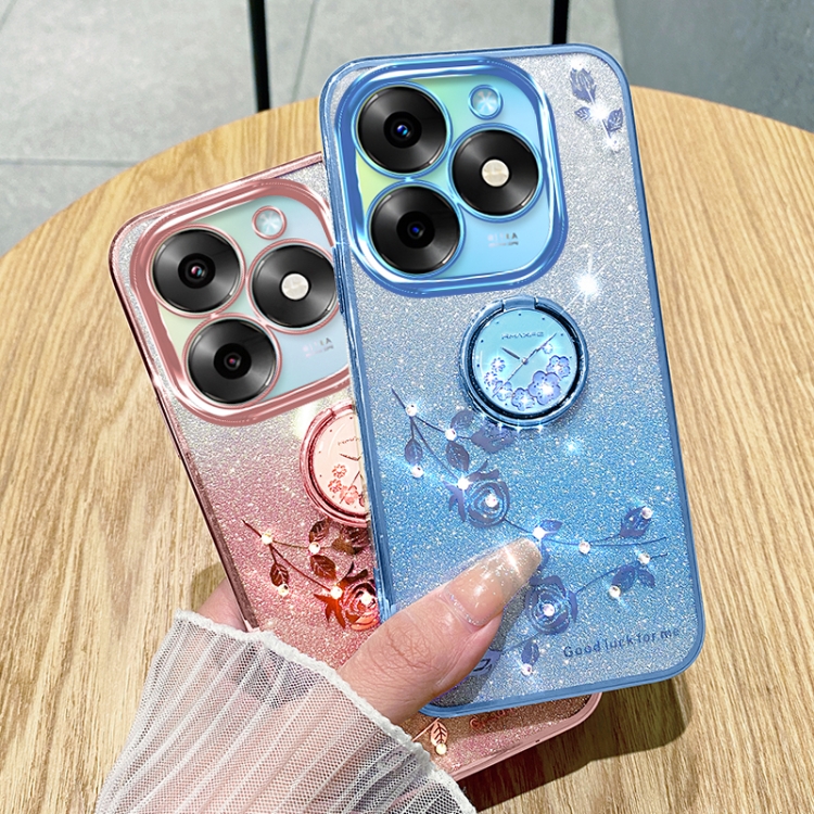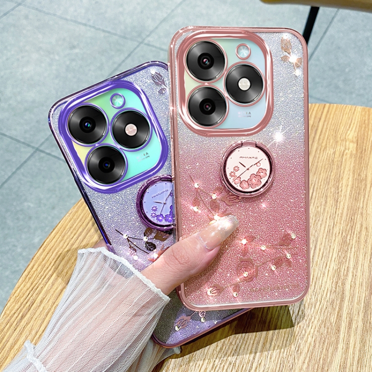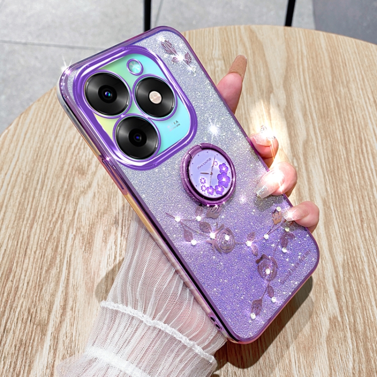Estuche para Itel S23 con Anillo de Flor Inmortal y Brillo Degradado (Púrpura)