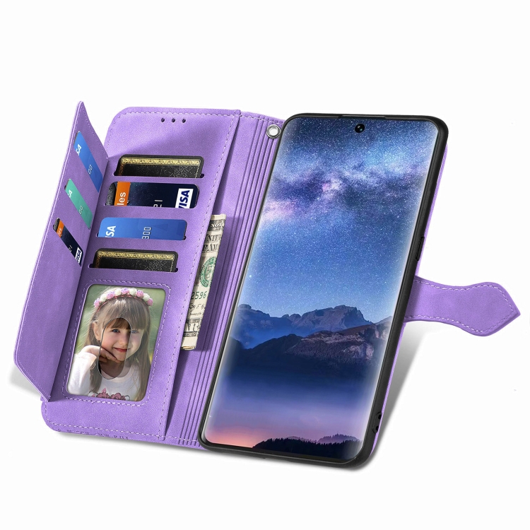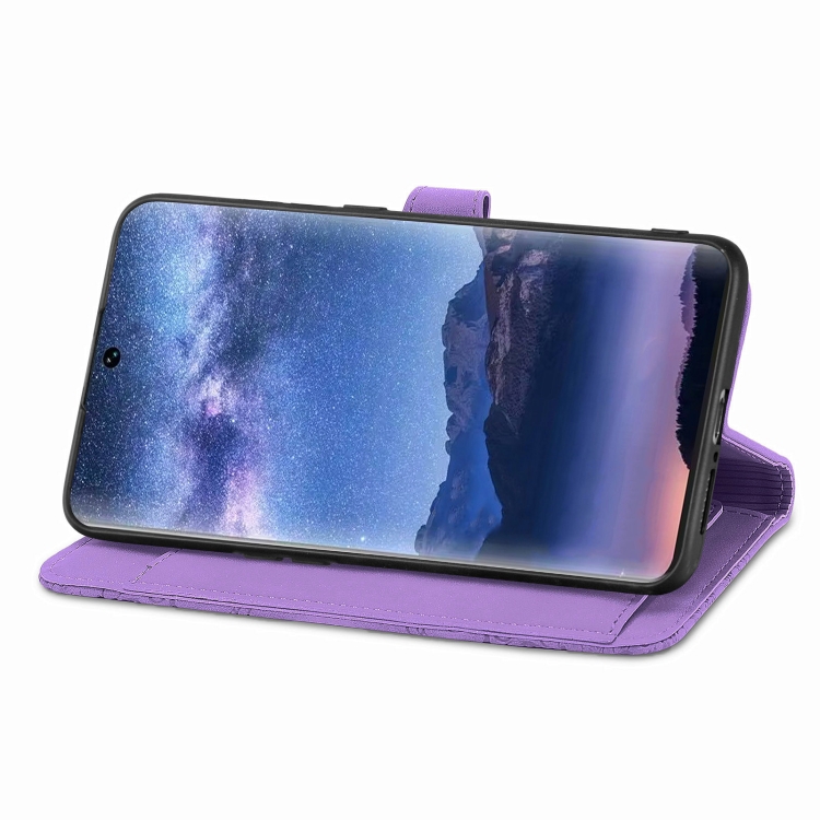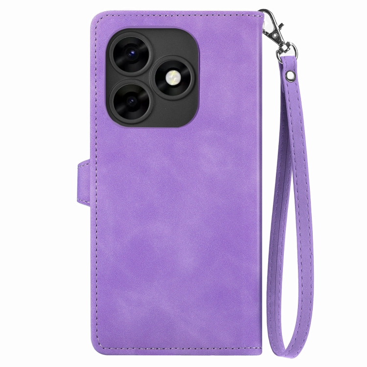 Funda de Cuero para Itel S23 con Cremallera y Flores en Relieve (Púrpura)