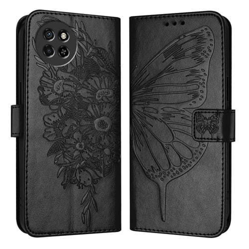 Funda de Cuero para Itel S23 con Mariposa en Relieve (Negro)