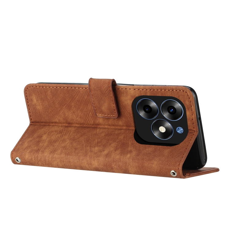 Funda de Cuero para Itel S23 con Skin Feel, Patrón de Rayas y Cordón (Marrón)