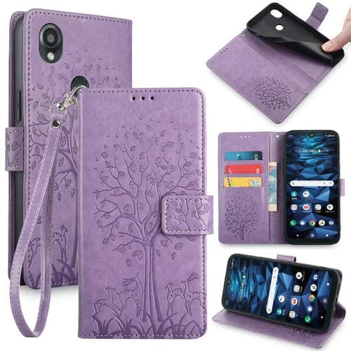 Funda de Cuero Kyocera Digno Sx3-Kyg02 con Relieve de Árbol y Ciervo (Púrpura)