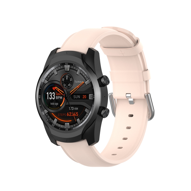 Banda de Reloj de Cuero Ticwatch Pro 2020 22mm con Hebilla Redonda (Rosa Claro)
