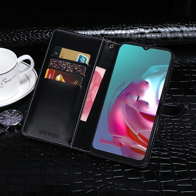 Funda de Cuero Idewei Cocodrilo para Lenovo K13 Note con Soporte y Ranuras para Tarjetas (Negro)