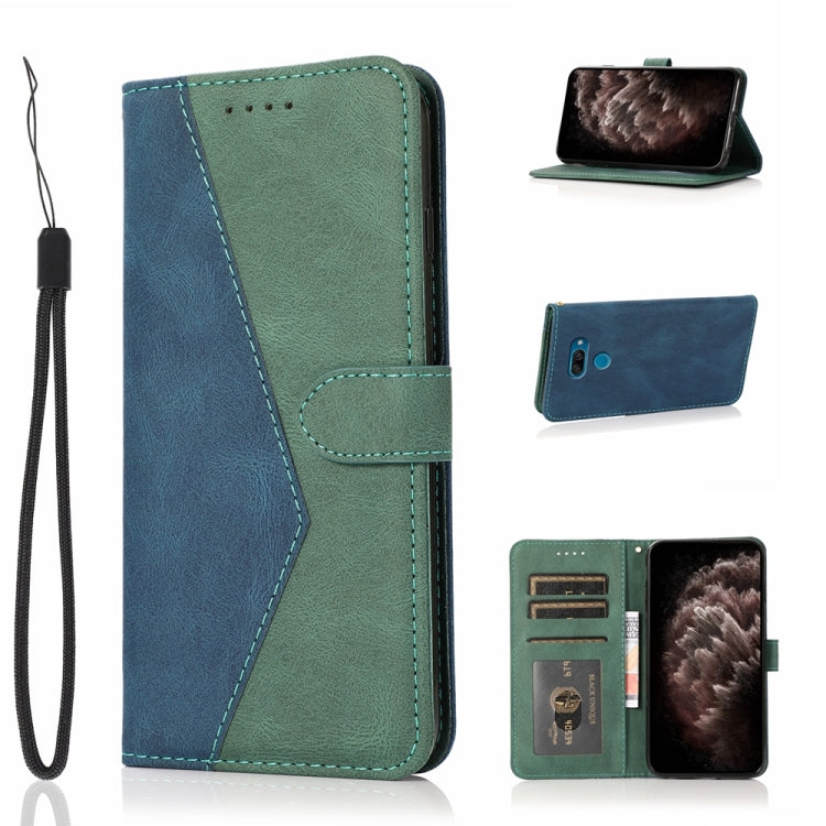 Estuche de Cuero para LG K50 / Q60 con Costuras de Dos Colores (Azul Verde)