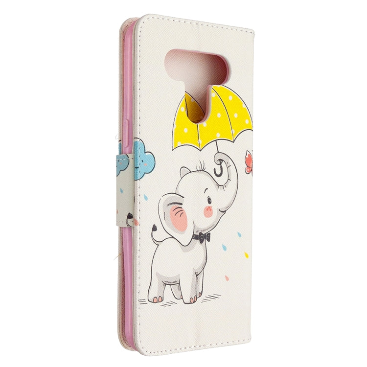 Estuche de Cuero Abatible Horizontal para LG K51 con Soporte, Ranuras para Tarjetas y Billetera (Elefante)